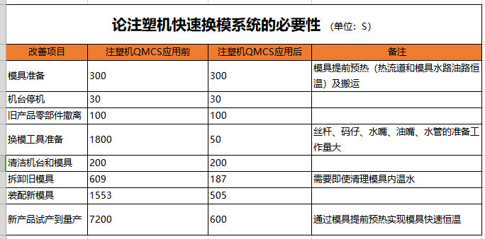 注塑機(jī)快速換模系統(tǒng)應(yīng)用換模時(shí)間對(duì)比